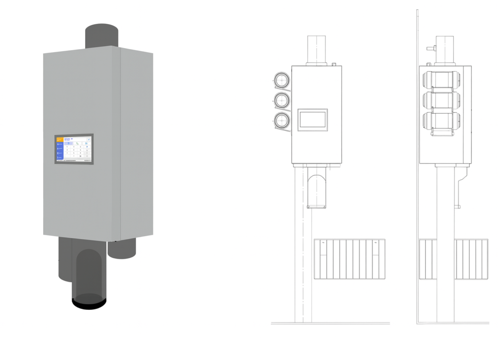 Trạm có họng gửi và họng nhận ở bên dưới.